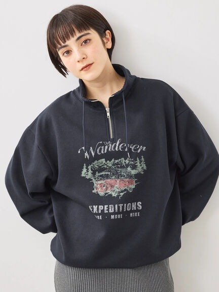 圖案印花半拉鍊翻領內刷毛衛衣(0F001489110) - Samansa Mos2