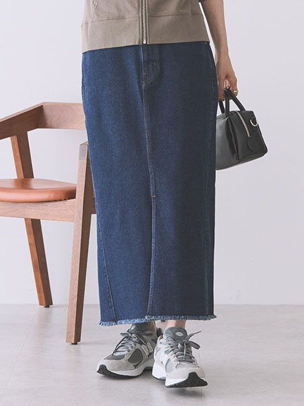 前開岔設計裙襬抽鬚牛仔長裙(0H000625200) - AMERICAN HOLIC