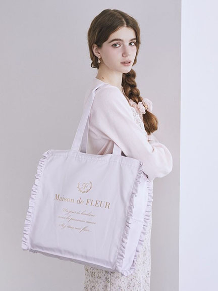 品牌標誌燙金荷葉摺邊方形手提袋(08001386700) - Maison de FLEUR