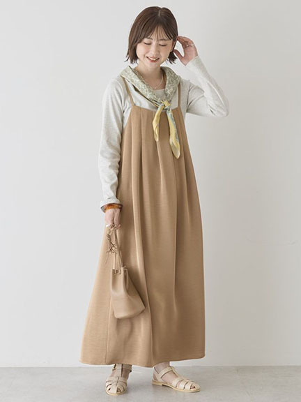 褶襉緞面後綁帶吊帶洋裝(0H001352000) - AMERICAN HOLIC