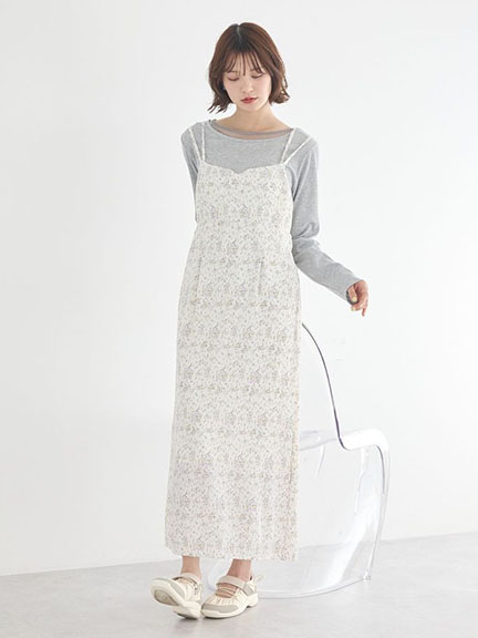 碎花圖案連身平口細肩洋裝(01001372300) - earth music&ecology