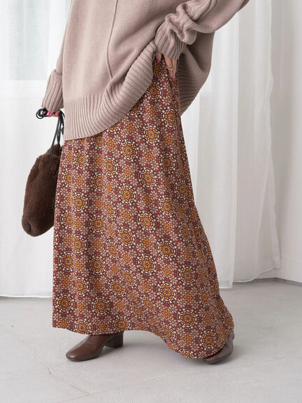 復古彩色玻璃幾何圖案喇叭剪裁長裙(1L24L0L0100) - earth music&ecology