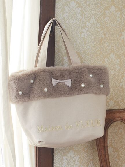 【WEB限定】甜美珍珠毛絨拼接帆布托特包(8S33F0J1400) - Maison de FLEUR