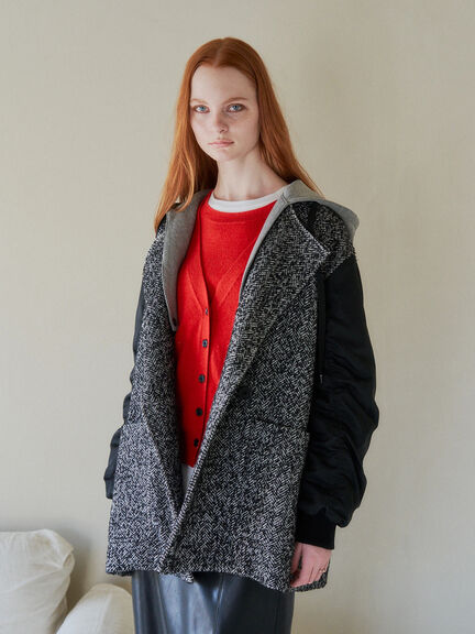 2Way人字紋花呢羊毛混紡中長版外套(7B34L0Z0200) - YECCA VECCA