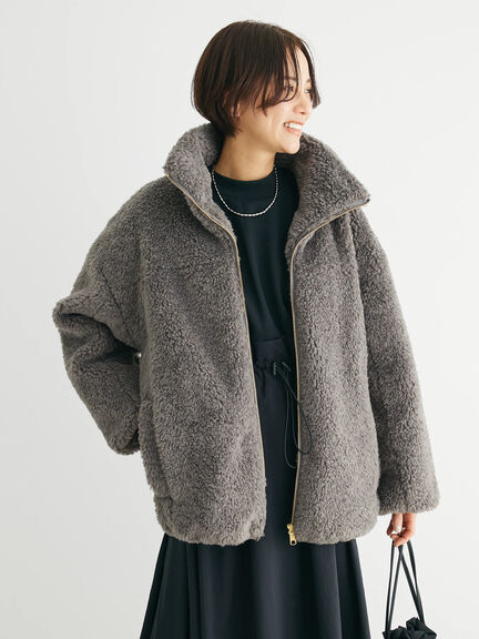 泰迪熊毛毛蓬鬆立領拉鍊外套(6P37L0Z0600) - Green Parks