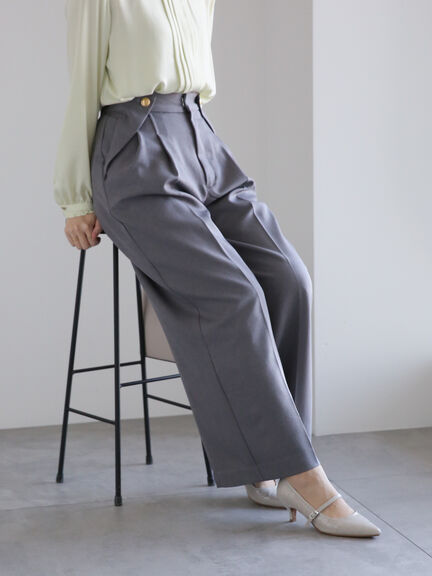 俐落斜紋金釦腰頭設計直筒長褲(FC41L0F0380) - Te chichi