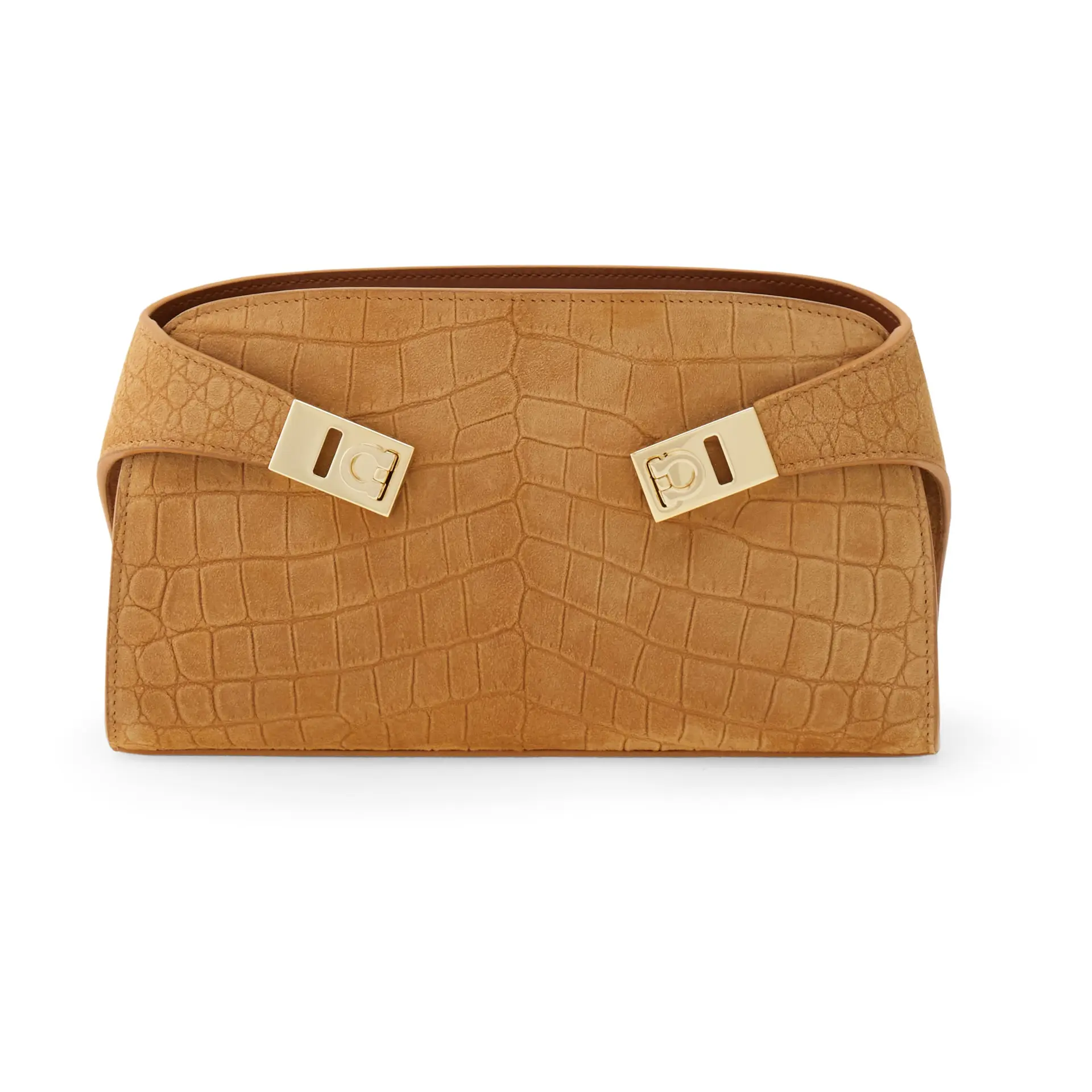 【FERRAGAMO】Hug Soft 鱷魚壓紋斜挎包