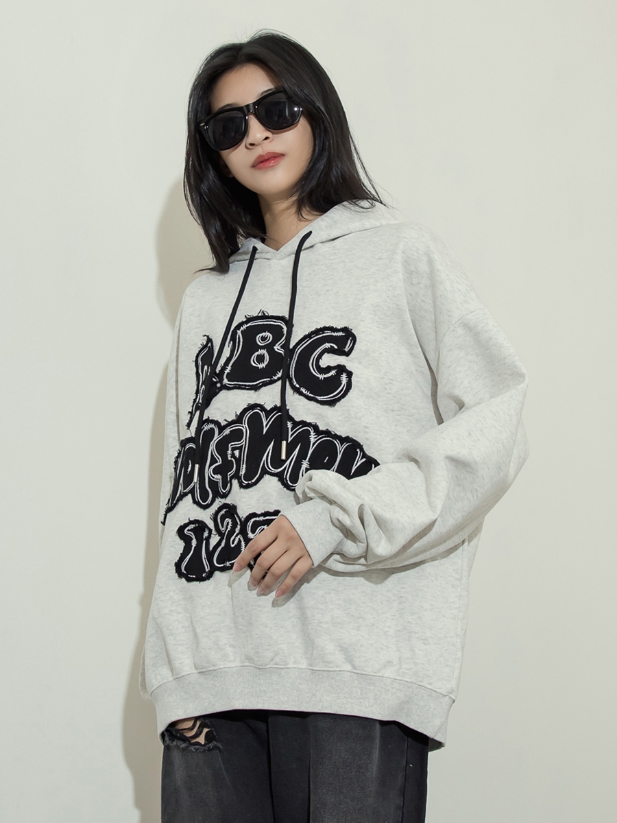 ABC字母拚色貼布長帽T