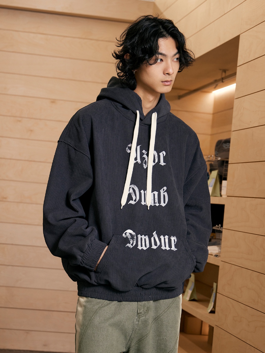 歌德字印花燈心絨長帽T