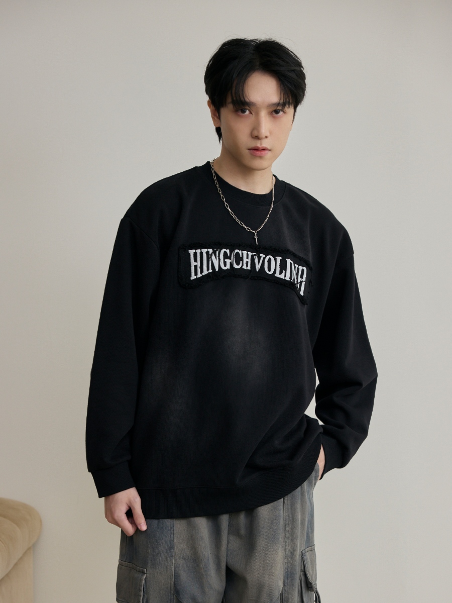 個性破損貼布字排版大學T