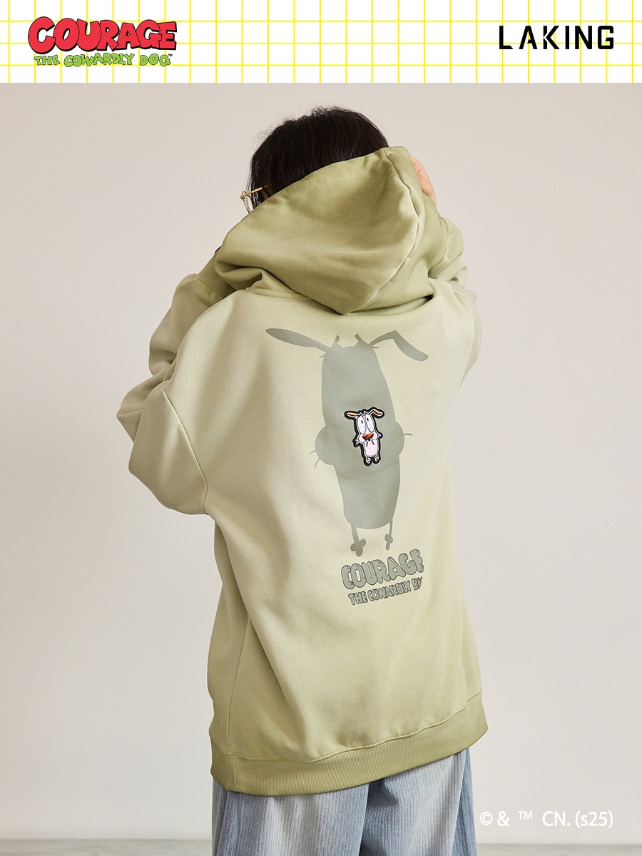 膽小狗英雄-粉紅萌犬勇氣背圖長帽T