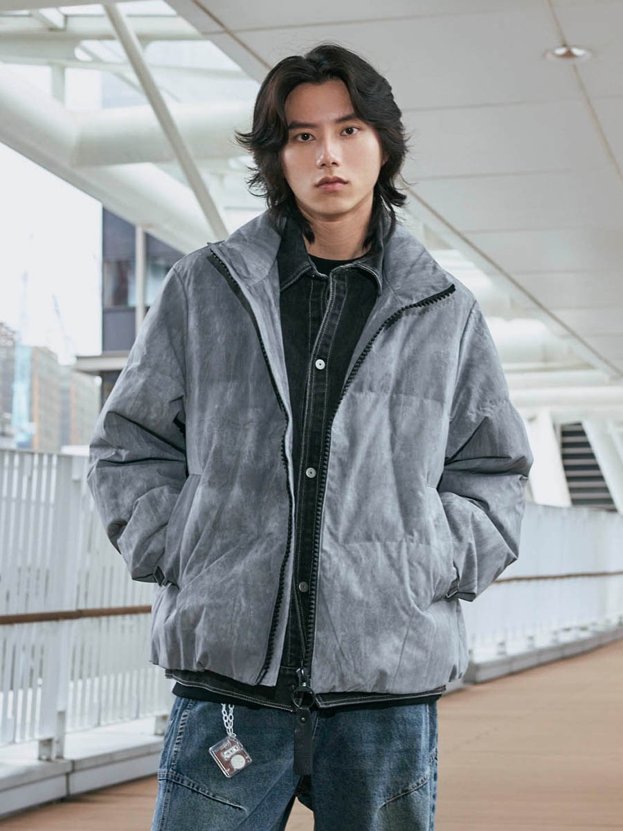背後繡字假兩件鋪棉厚外套