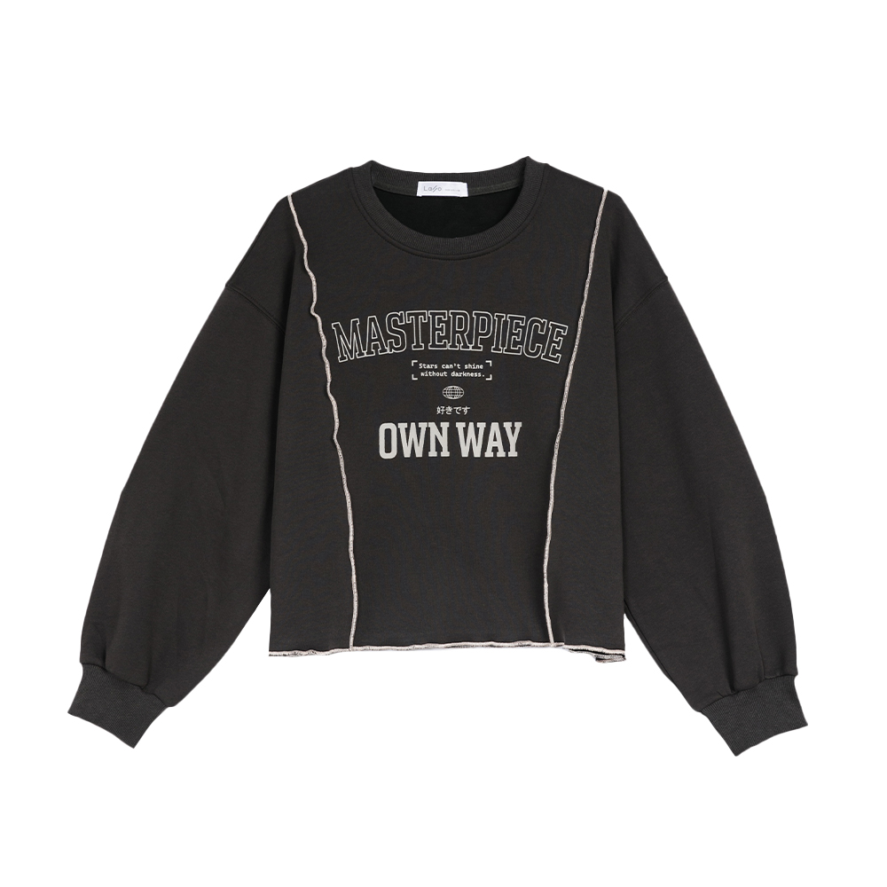 小翅膀捲邊拼接長袖上衣