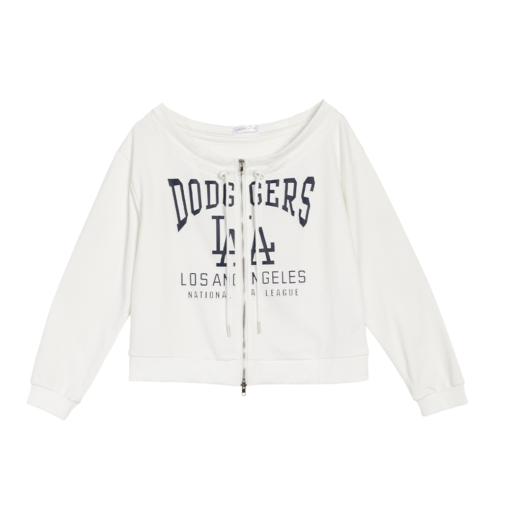 美式字母拉鍊抽繩一字肩上衣