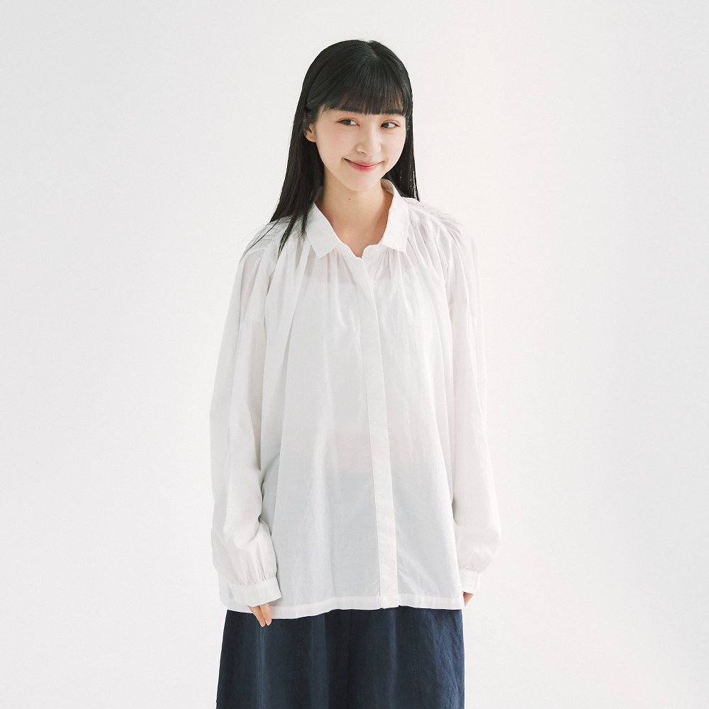 肩褶皺寬鬆襯衫 白F