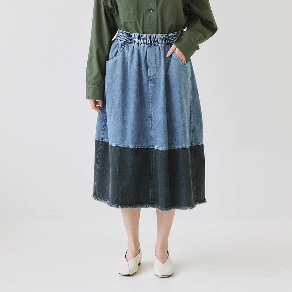 牛仔拼接半身裙 藍F