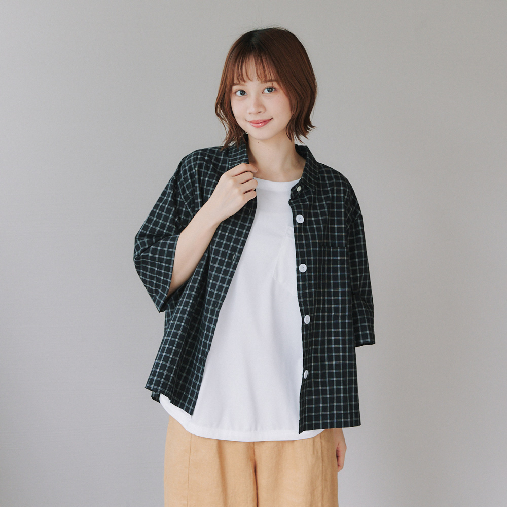 寬鬆格子襯衫 黑F