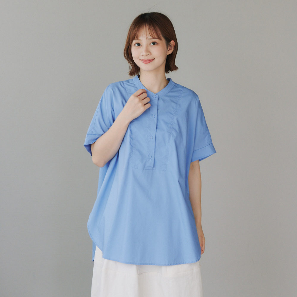 弧邊小立領襯衫 藍F