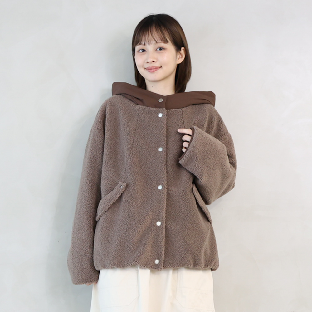 羊羔毛鋪棉連帽外套 咖啡F
