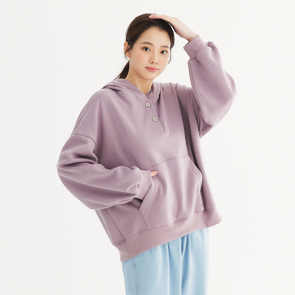 連帽大口袋落肩帽T 紫F