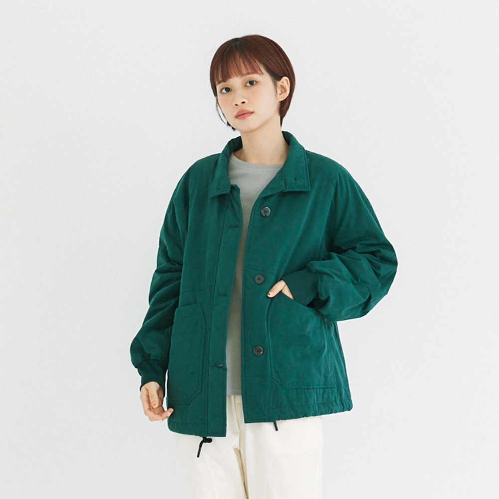 寬鬆感抽繩鋪棉外套 綠F