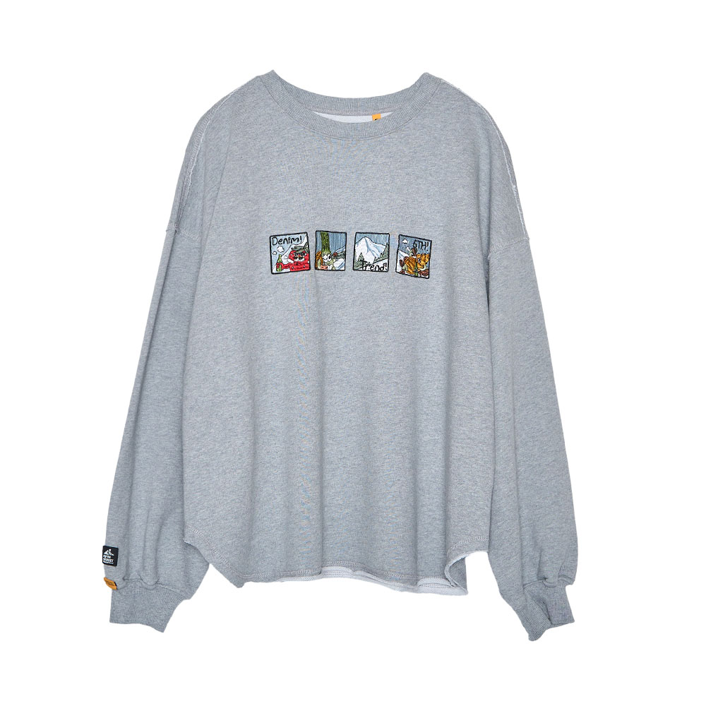 5th STREET|女裝|高山蔬菜繡花長袖T恤|麻灰色