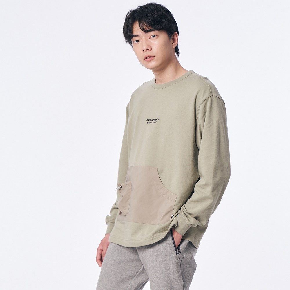 5th STREET|山形|男裝|拼接口袋設計長袖T恤|綠色