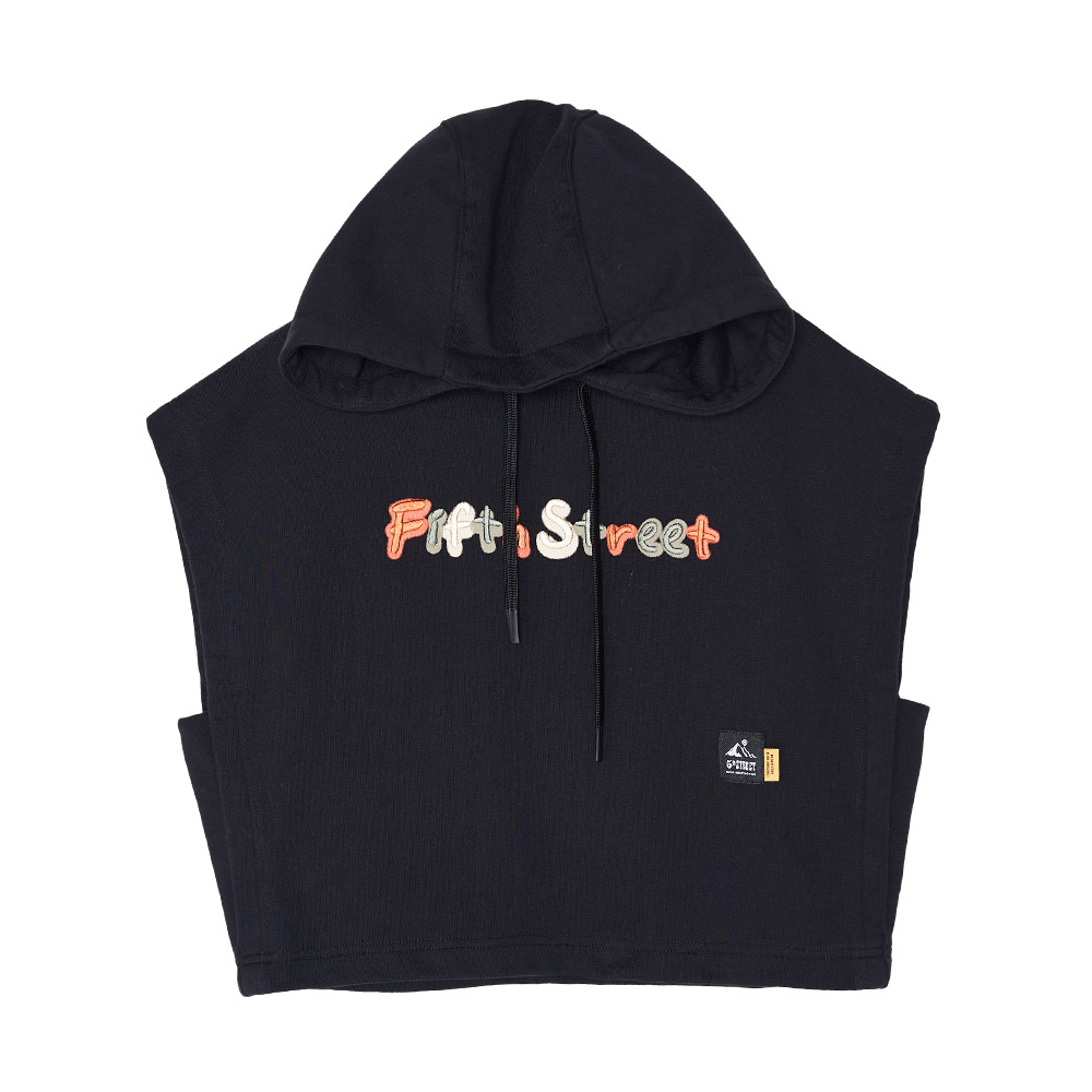 5th STREET|山形|女裝|短版彩色凸繡logo設計無袖帽T|黑色