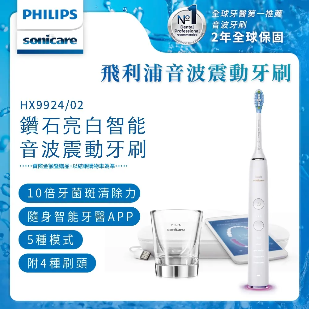 Philips 飛利浦 Sonicare 鑽白極淨智能鑽石音波震動牙刷/電動牙刷-晶鑽白(HX9924/02)