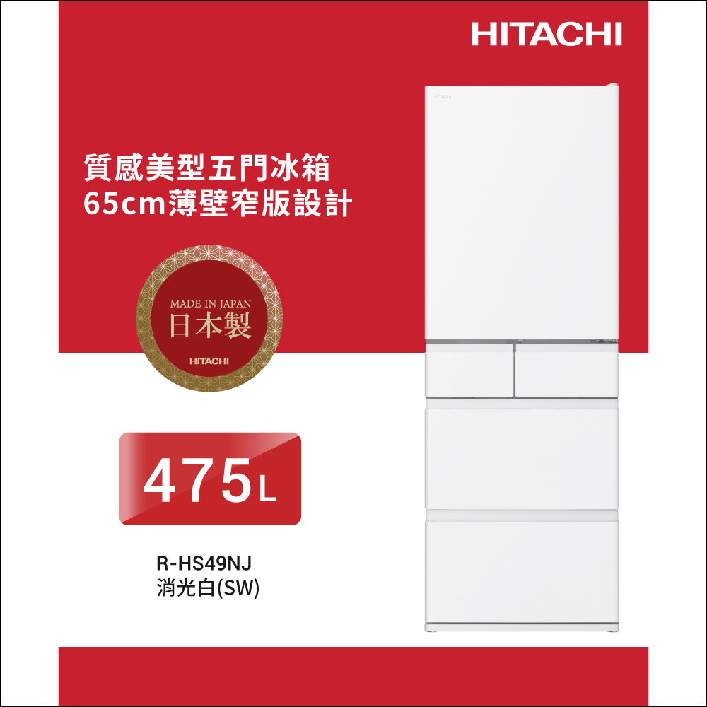 日立 日本原裝 475公升 新髮絲紋鋼板 五門冰箱 RHS49NJ