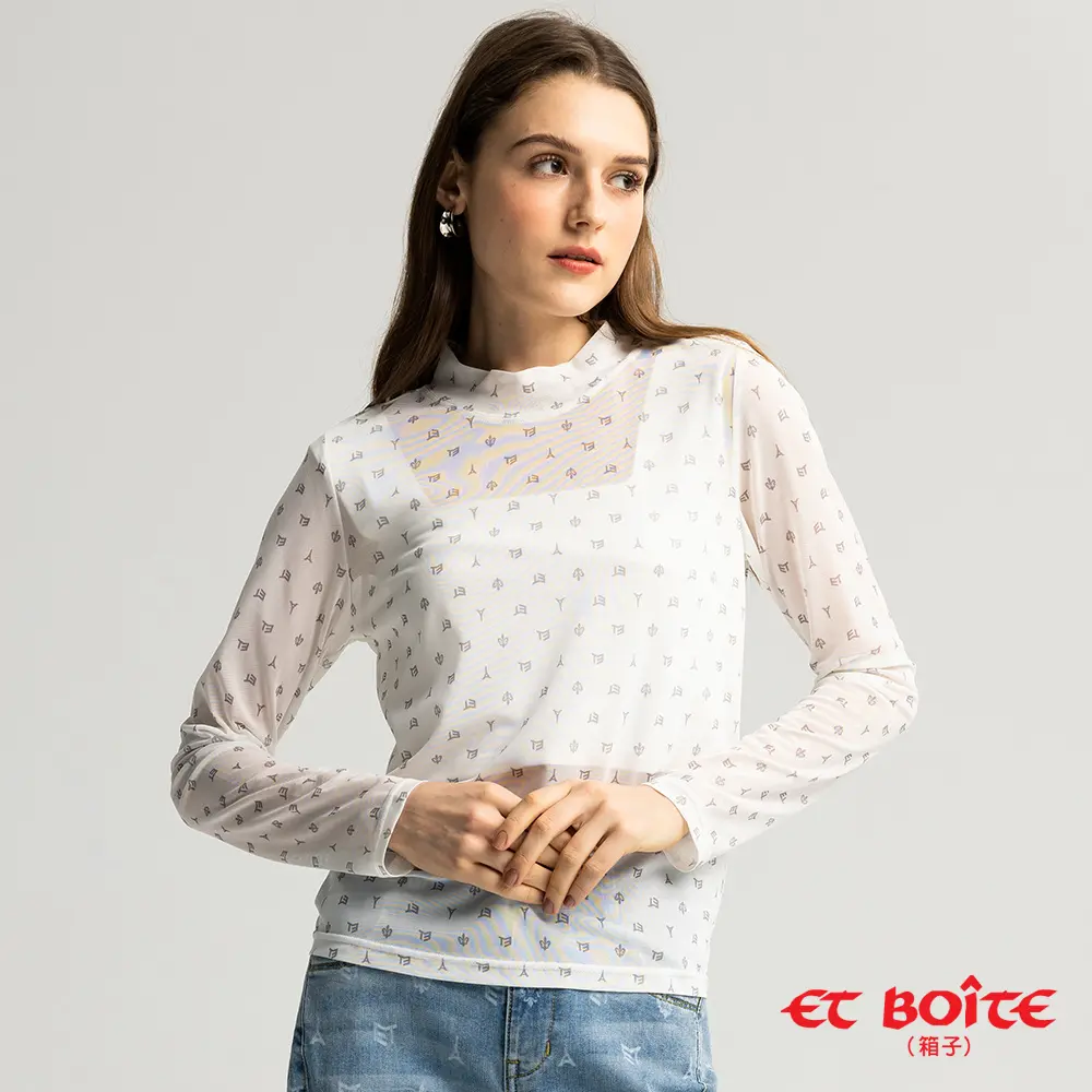 【BLUE WAY】老花網眼半高領微透打底衫(白)