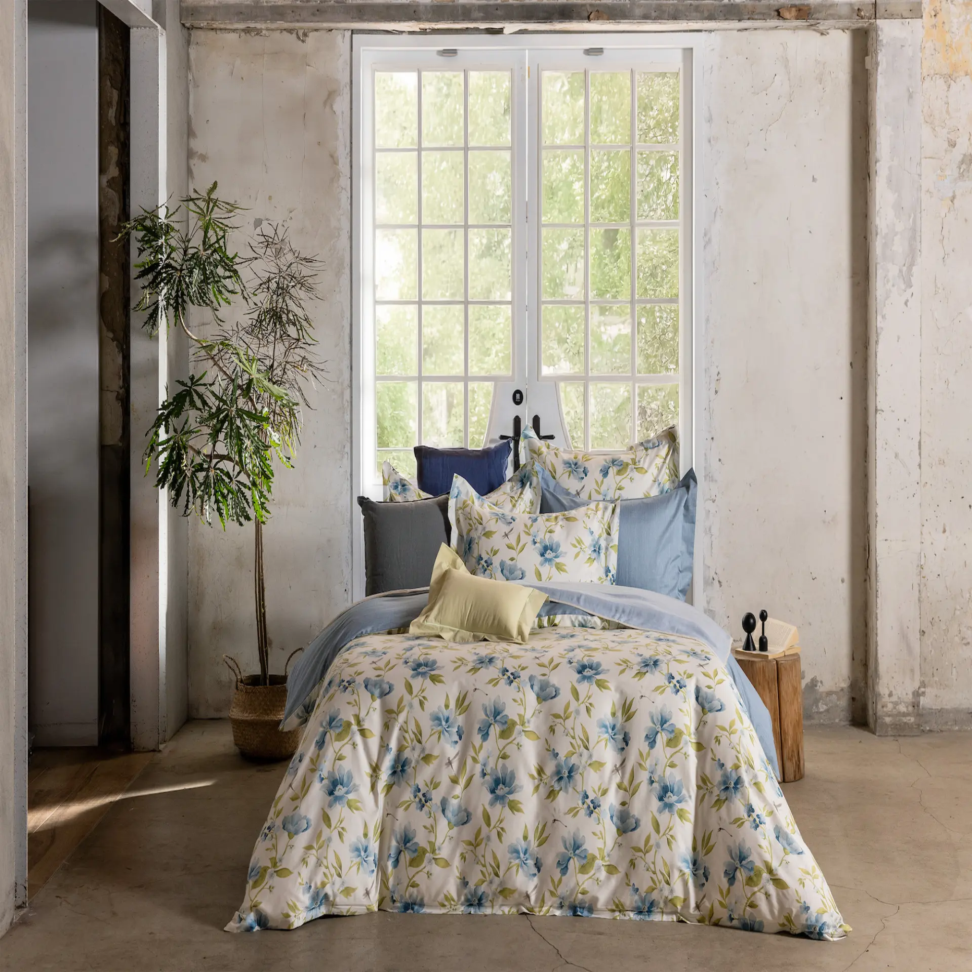 【台中店-安妮莎琳】ROXETTE 長纖細棉印花雙人全套床組#458 綠幕盎然